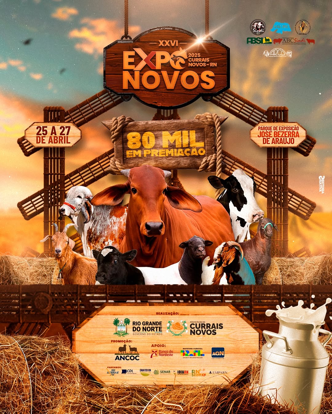 Uma das maiores exposições agropecuárias do Rio Grande do Norte promete ter uma de suas maiores edições este ano. A 26ª EXPONOVOS em Currais Novos acontecerá de 25 a 27 de abril no Parque de Exposições “Dr. José Bezerra de Araújo” e terá R$ 80 mil em premiações, com a participação de expositores de vários estados que prometem movimentar a economia e renda da região durante o evento.