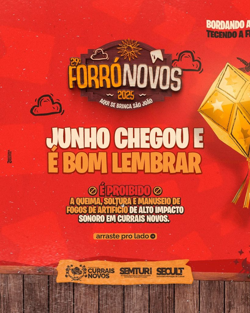 Com o início dos festejos juninos, a Prefeitura de Currais Novos reforça a proibição da queima, soltura e manuseio de fogos de artifício com alto impacto sonoro no município. A medida está prevista na Lei Municipal Nº 3.858, de 21 de junho de 2023, que veta o uso de artefatos pirotécnicos do tipo “fogos de estampido”.