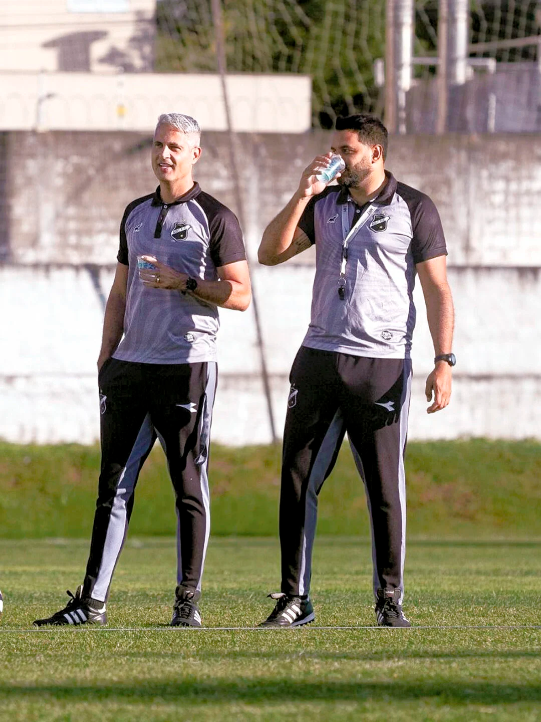 O auxiliar técnico Jonidey Tostão (esquerda) assume a vaga do treinador Rodrigo Santana| Foto: RENNÊ CARVALHO