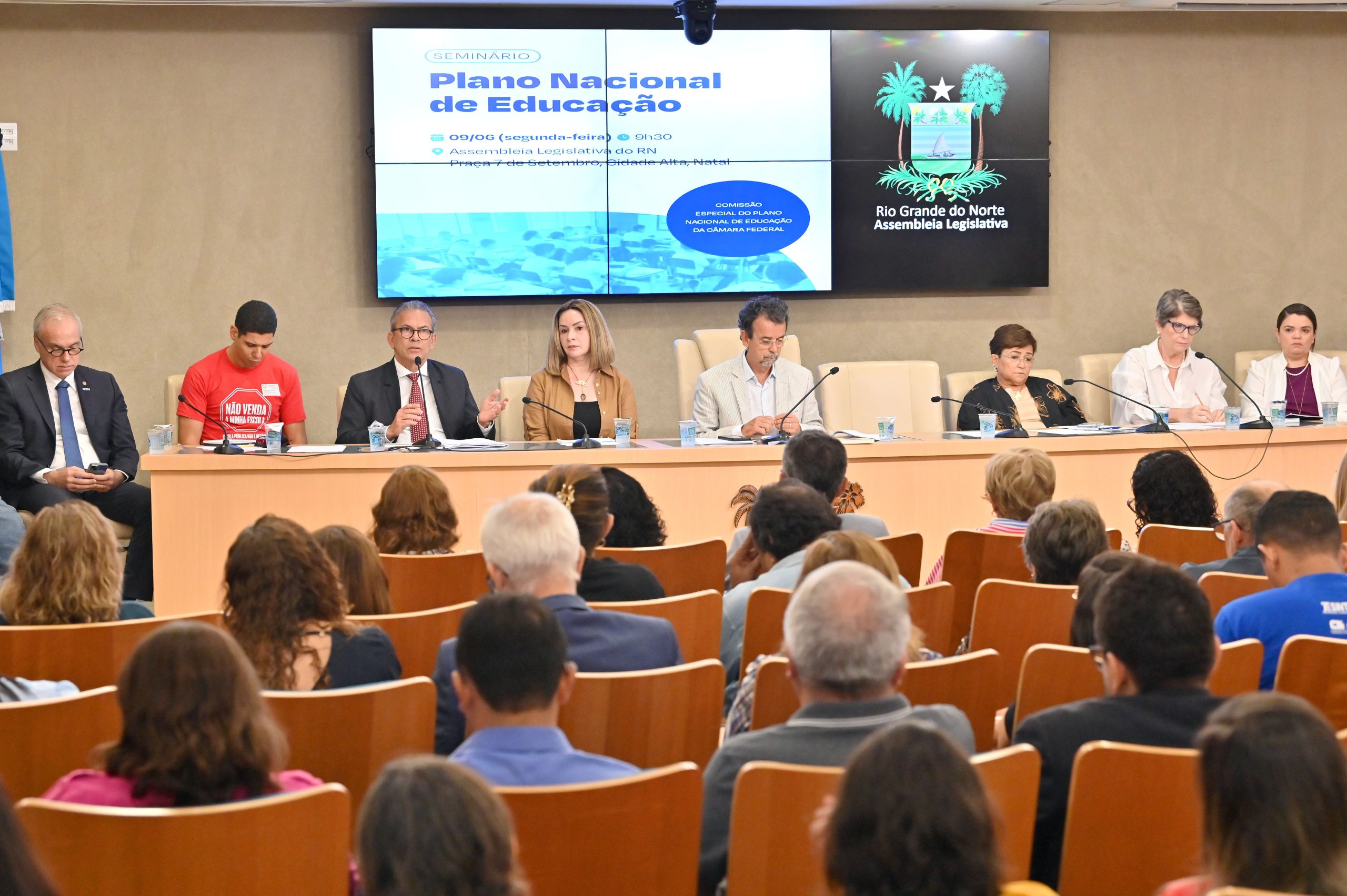 A Assembleia Legislativa do Rio Grande do Norte sediou, nesta segunda-feira (9), seminário para debater sobre o novo Plano Nacional de Educação. Membro da Comissão de Educação da Câmara dos Deputados, o deputado federal Fernando Mineiro (PT) comandou a sessão que contou com a presença da deputada federal Socorro Neri (PP), do Acre, vice-presidente da Comissão que tem como presidente, a deputada Tábata Amaral (PSB/SP).