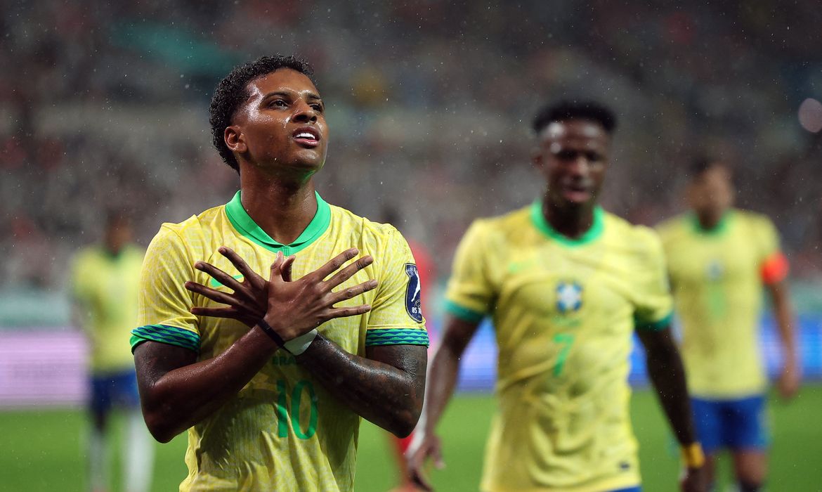 A principal qualidade exibida pelo Brasil, na partida desta sexta-feira (10) no Estádio da Copa do Mundo de Seul, foi a boa sintonia do quarteto ofensivo formado por Estêvão, Matheus Cunha, Vinicius Júnior e Rodrygo.