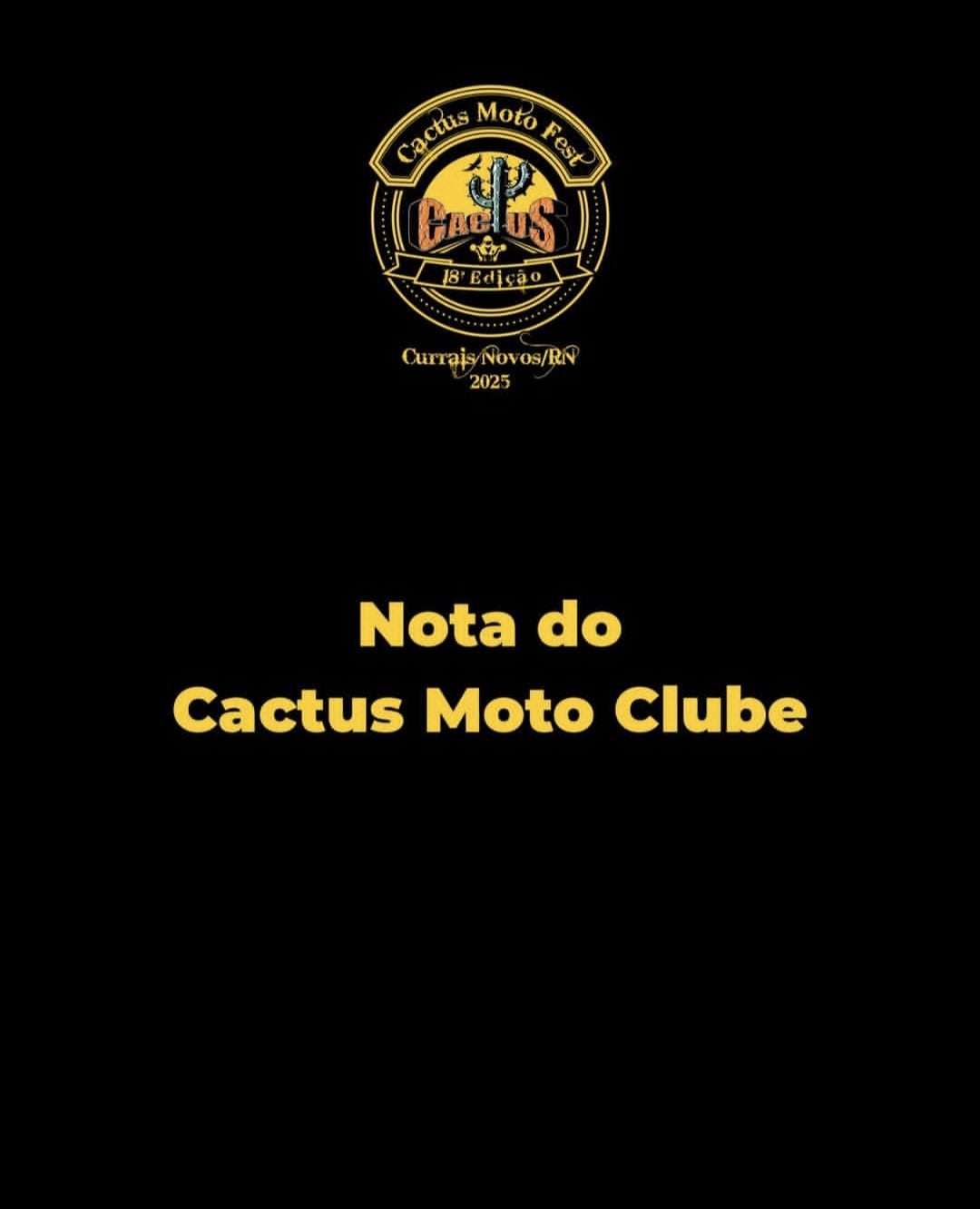 O Cactus Moto Club reforça o compromisso com a organização de eventos que respeitem o público e valorizem a cultura, e seguirá atento para que situações como esta não se repitam.