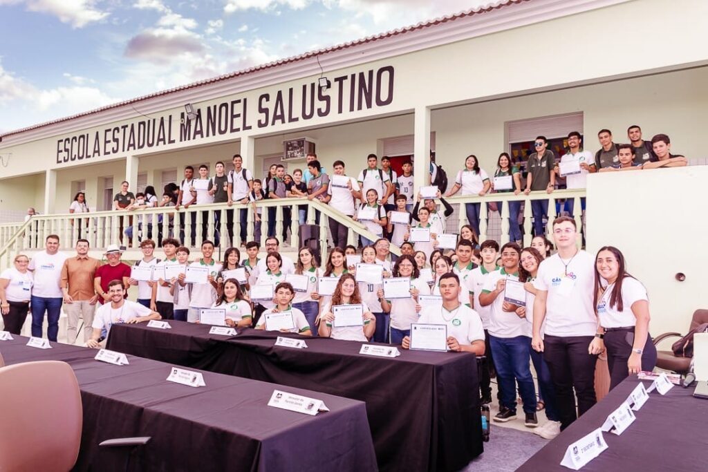 A Escola do Legislativo José Bezerra Gomes promoveu, nesta terça-feira (17), uma série de atividades na Escola Estadual Manoel Salustino que beneficiaram mais de 100 adolescentes. A programação foi voltada para a formação cidadã e política dos estudantes, com foco em três eixos principais: democracia, sustentabilidade e prática legislativa.