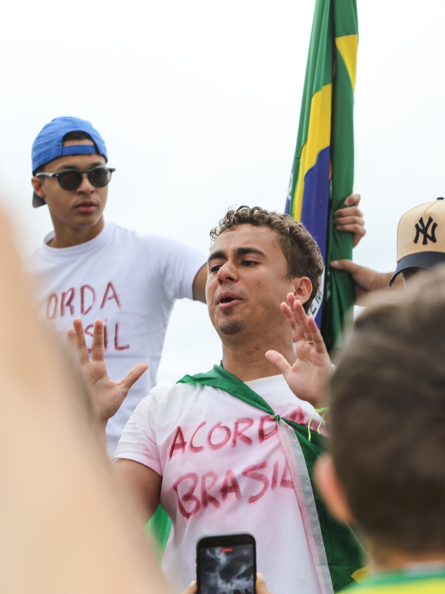 O deputado compartilhou nas redes sociais registros da chegada, mostrando manifestantes gritando “Acorda, Brasil”, carregando bandeiras do Brasil e usando camisas da seleção brasileira de futebol. Em uma publicação, Nikolas afirmou: “Chegamos em Brasília! Falta pouco”.