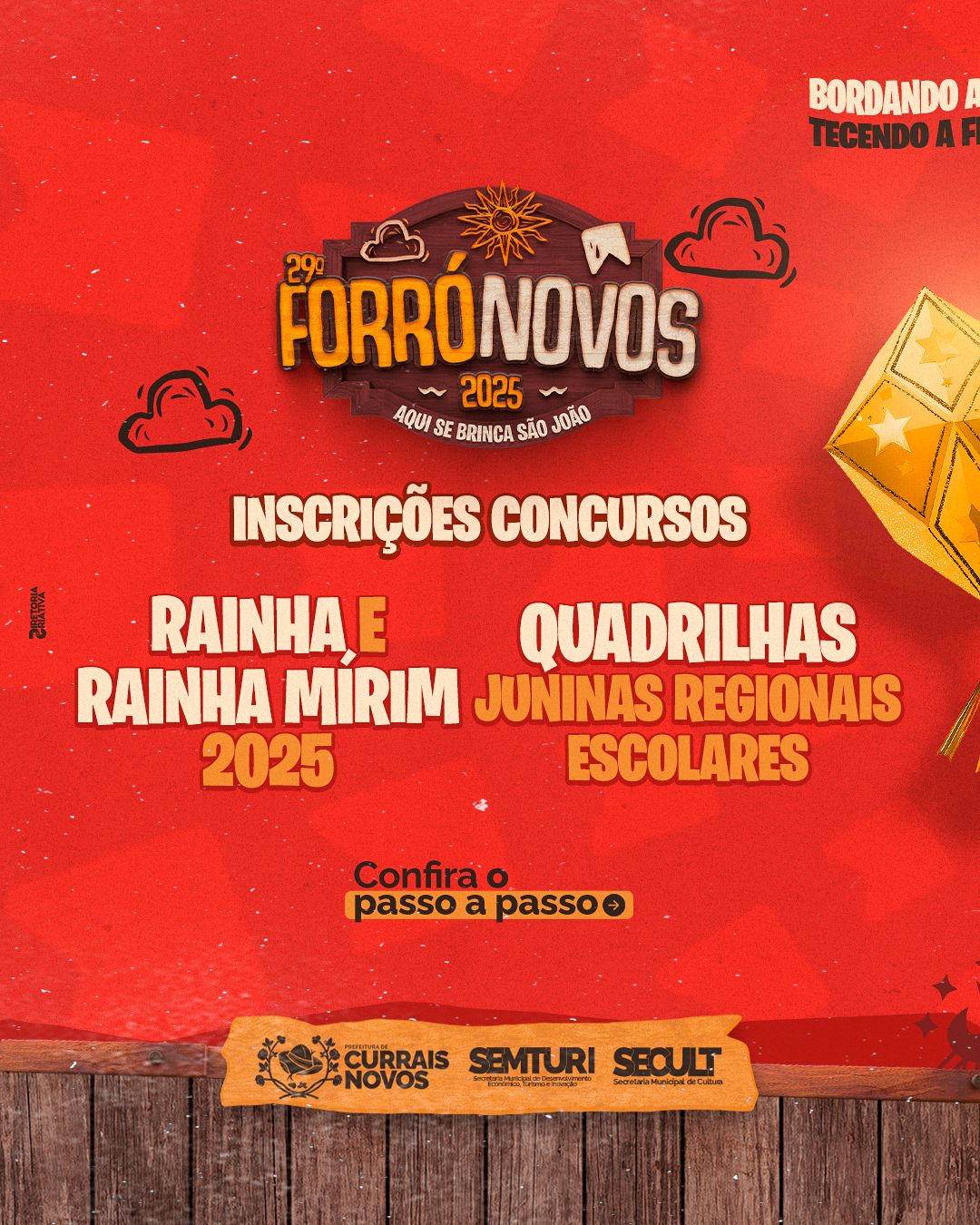Atenção, estão abertas as inscrições para a competição de quadrilhas escolares e do concurso de “Rainha e Rainha Mirim” do FORRONOVOS 2025. O formulário das inscrições está disponível na Bio do Insta @secultnovos