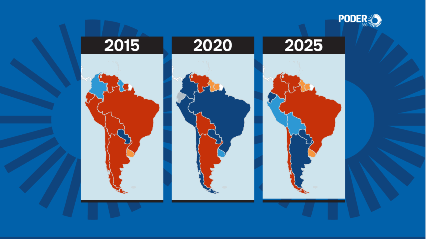Ao analisar o mapa político sul-americano na última década, observa-se um avanço significativo da direita entre 2015 e 2020, quando subiu de três para seis países sob seu controle, seguido de uma retomada da esquerda.