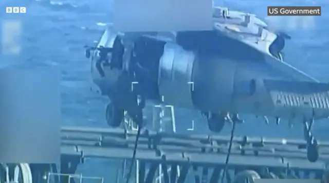 O vídeo de 45 segundos mostra uma equipe americana armada caminhando pelo convés do navio, sem membros da tripulação visíveis.