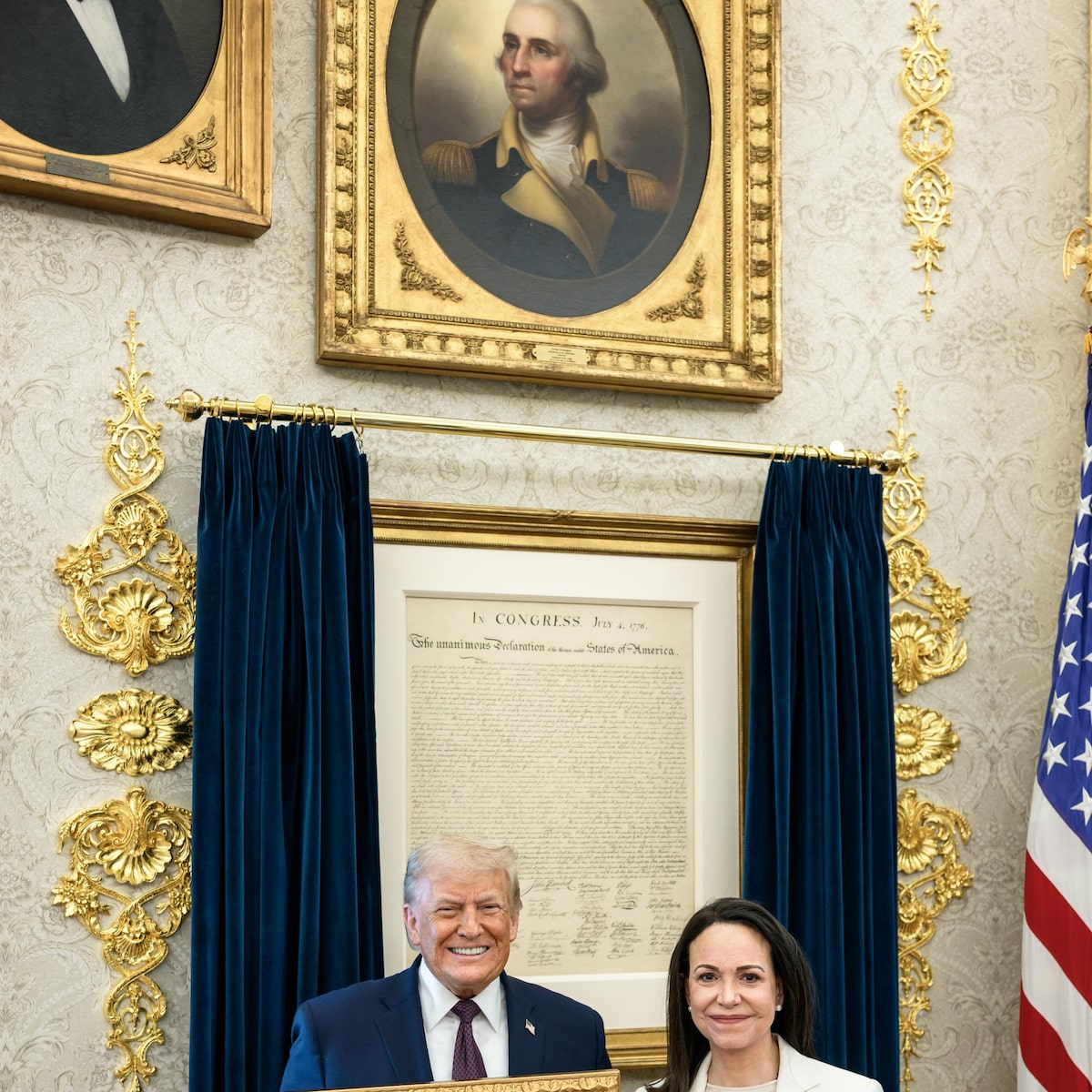 Horas depois, Trump publicou em suas redes sociais: “Foi uma grande honra encontrar María Corina Machado, da Venezuela, hoje. Ela é uma mulher maravilhosa que passou por muita coisa. María me presenteou com seu Prêmio Nobel da Paz pelo trabalho que fiz. Um gesto maravilhoso de respeito mútuo. Obrigado, María!”