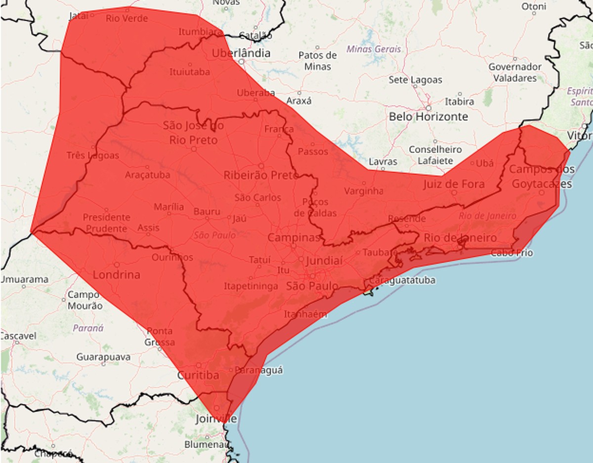 O Instituto Nacional de Meteorologia (Inmet) renovou até pelo menos segunda-feira o alerta vermelho, o nível máximo de risco, para uma onda de calor intensa que atinge grande parte do Brasil, especialmente o Sudeste e regiões próximas. O aviso abrange 1.284 municípios, incluindo todos os municípios dos estados de São Paulo e Rio de Janeiro, além do norte do Paraná, sul de Minas Gerais e sul do Espírito Santo.
