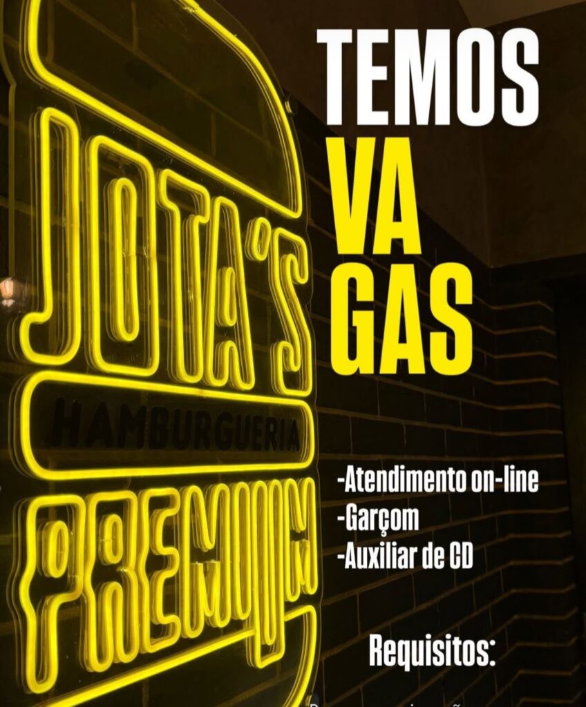 A Jota’s Hamburgueria, de Currais Novos, anunciou a abertura de novas oportunidades de emprego para reforçar sua equipe. As vagas disponíveis são para os cargos de atendimento on-line, garçom e auxiliar de centro de distribuição (CD).