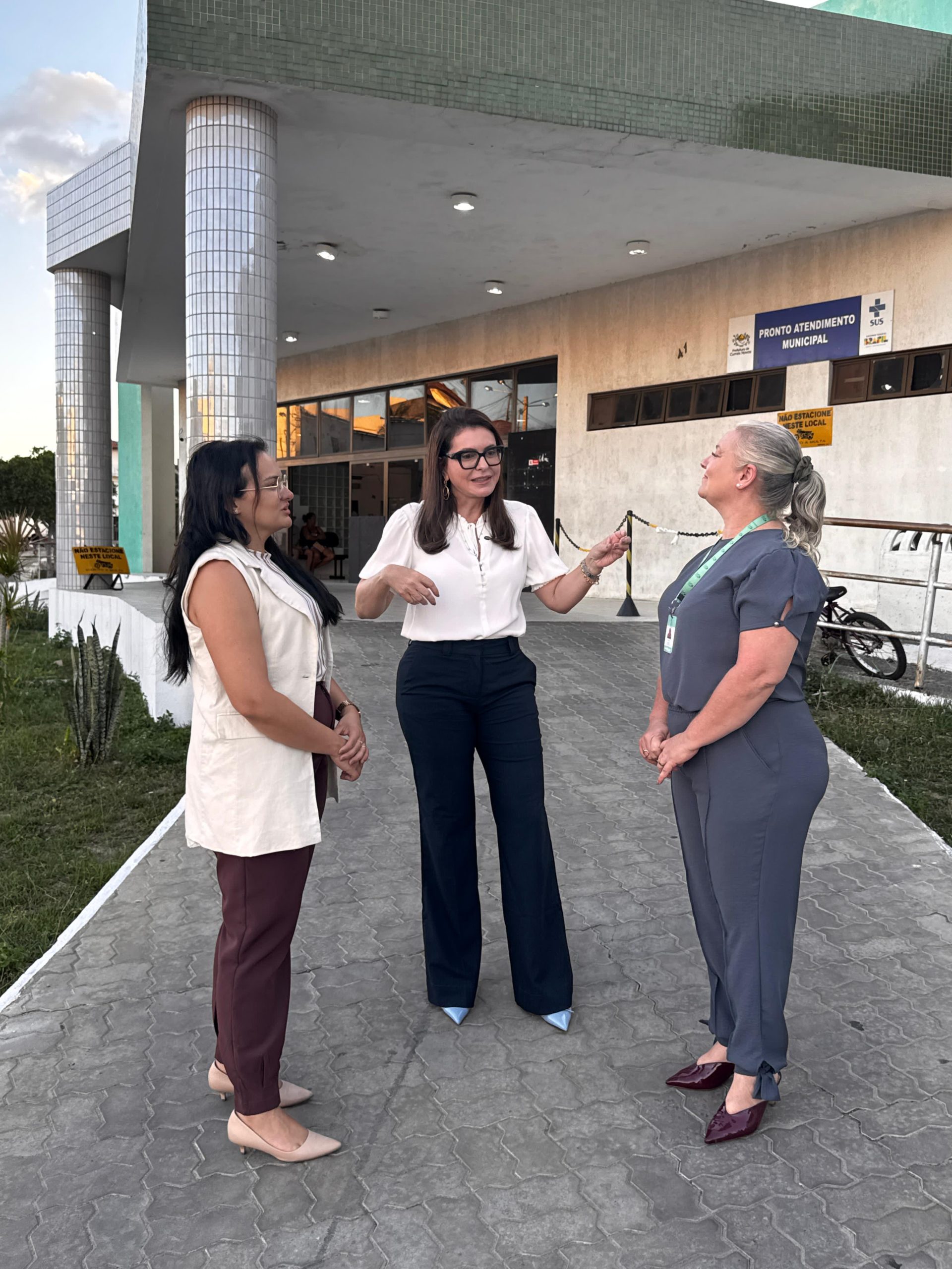 A visita contou com a presença da secretária municipal de Saúde, Alana Moraes, e da coordenadora geral do Pronto Atendimento Municipal, Patrícia Rosana.