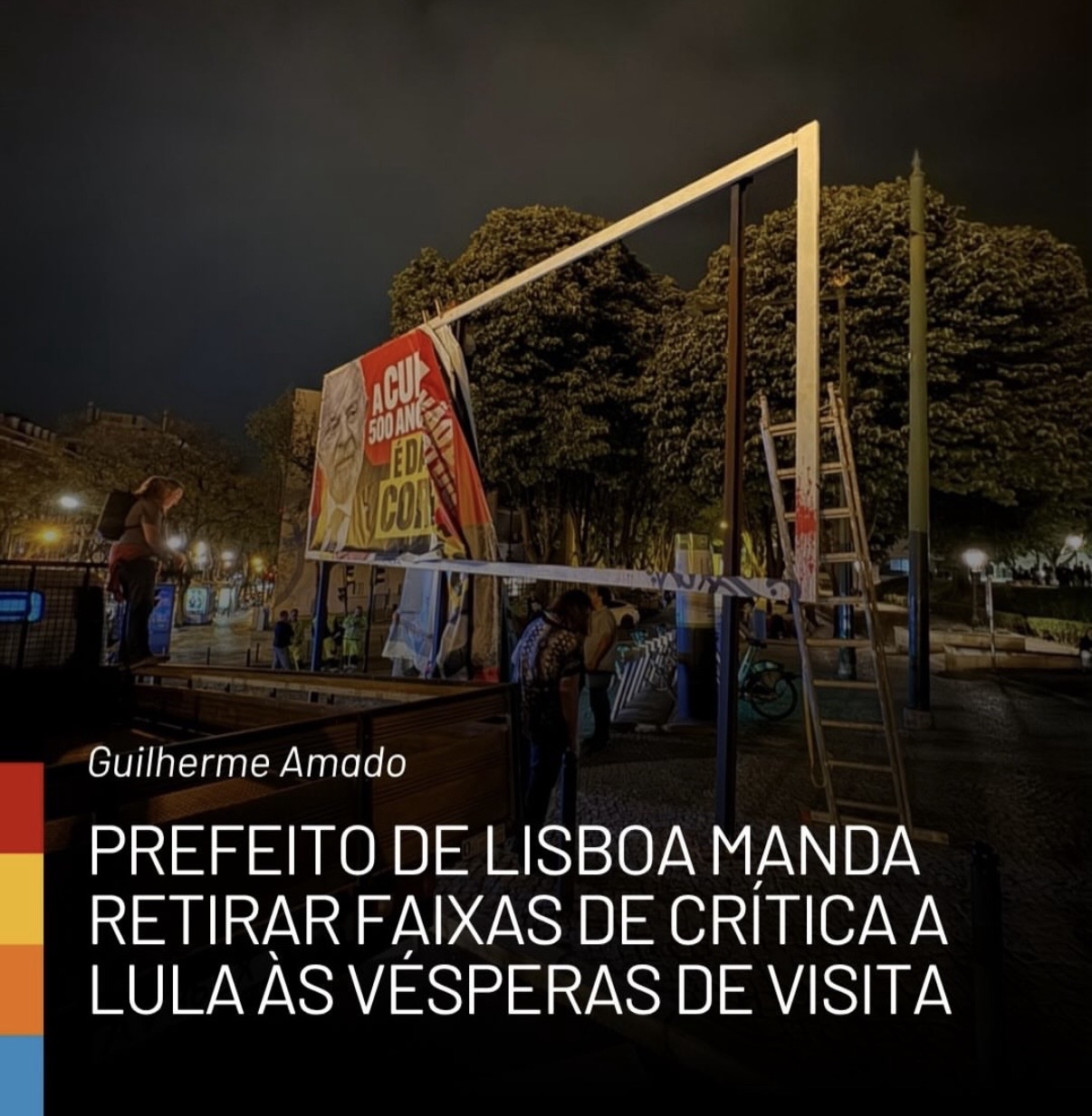 Na madrugada de terça-feira, 21, o prefeito de Lisboa, Carlos Moedas, ordenou a remoção de outdoors com críticas ao presidente Lula, que estavam próximos à Assembleia da República. A ação teve o objetivo de impedir que Lula tivesse contato com essas mensagens durante sua visita à capital portuguesa.