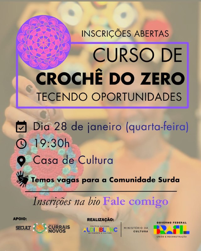 Um projeto voltado à inclusão social e ao fortalecimento da cultura foi contemplado no edital da Lei Aldir Blanc, por meio da Secretaria Municipal de Cultura de Currais Novos. A iniciativa propõe a realização de oficinas de crochê abertas ao público, com atenção especial à inclusão da Comunidade Surda.