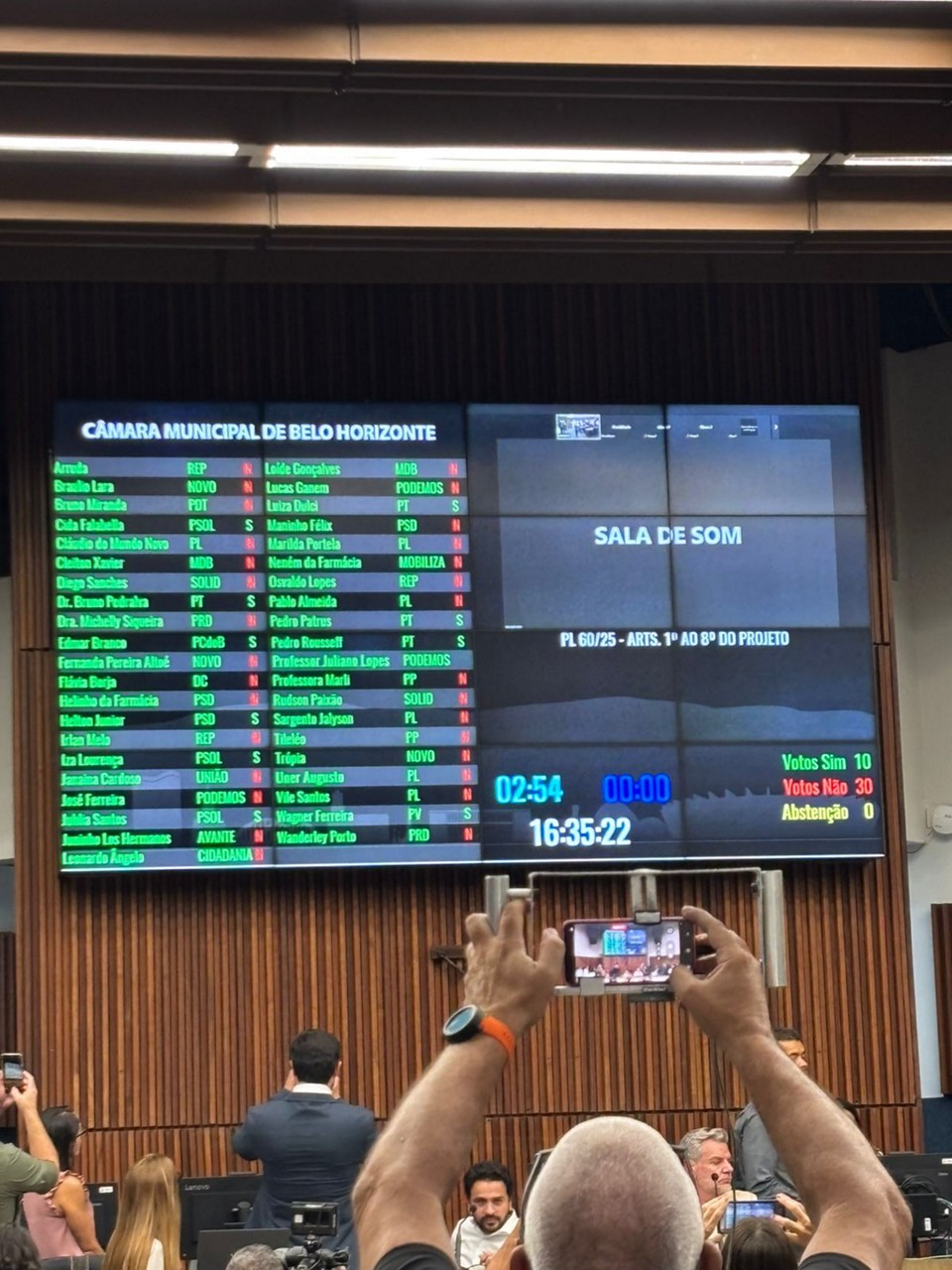 A maioria dos vereadores de Belo Horizonte rejeitou o projeto que propunha a Tarifa Zero para o transporte coletivo da cidade. O placar final foi de 10 votos a favor e 30 contrários, sem o voto do presidente da Câmara, Juliano Lopes (Podemos).
