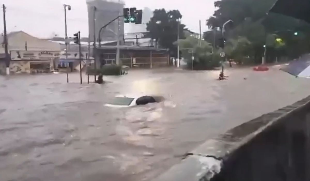 Durante o temporal, dois veículos foram levados pela força da água após a Avenida Carlos Caldeira Filho ficar inundada, caindo em um córrego da região, conforme reportado pelo Metrópoles.