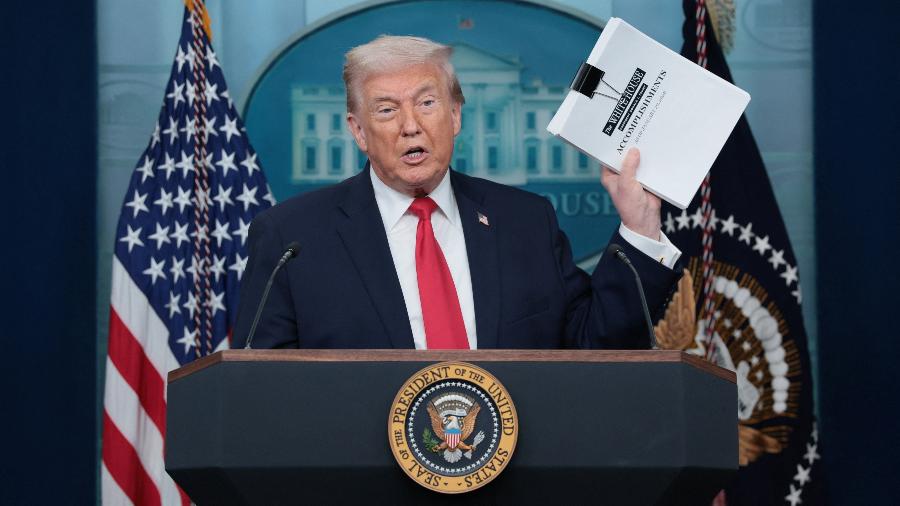 “Vocês vão descobrir”, respondeu o presidente dos Estados Unidos. A declaração ocorreu durante uma conferência de imprensa realizada à tarde para apresentar um balanço do primeiro ano do seu segundo mandato.