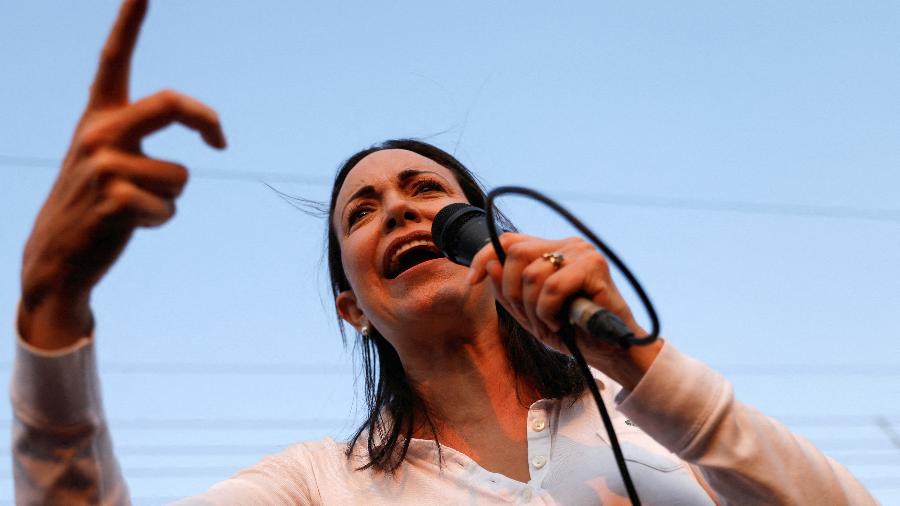 A opositora da Venezuela, que venceu as primárias mas foi declarada inelegível pela Suprema Corte venezuelana em janeiro daquele ano, viu os Estados Unidos impor novas sanções aos setores de petróleo e gás do país devido a essa decisão, que afetou o Acordo de Barbados, acordo político entre governo e oposição.