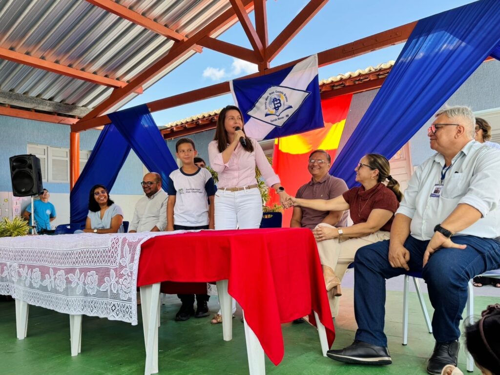 Milena Galvão levou sua mensagem acompanhada do jovem estudante Abner Vilar, que representou os demais alunos e expressou a alegria de viver um momento tão significativo para a educação do município. A vice-prefeita destacou que os investimentos reforçam a prioridade da gestão no setor. “É um sentimento de dever cumprido, especialmente para esta escola, que alcançou uma das melhores notas da rede municipal no Ideb mais recente. Esse é o compromisso da gestão: garantir mais dignidade e melhores condições de aprendizado para nossos alunos”, afirmou. Milena ainda incentivou a todos a acreditarem na educação como caminho de transformação, lembrando que investir nas escolas é investir no futuro de Currais Novos.